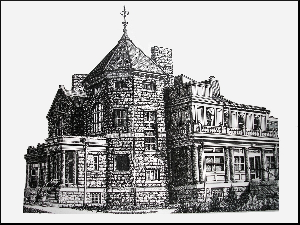 Lougheed House is the second in a series of drawings I've done of local historical buildings. The first drawing in the series was the old St. Mary's Girl's School in Calgary, which was built in 1909 and demolished in 2002.
