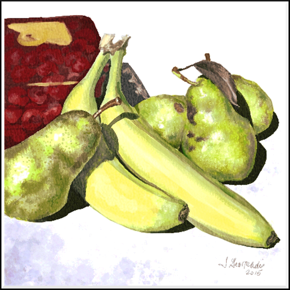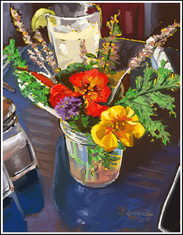 A traditional still life using a very textured digital canvas, and simple digital watercolour (lots of fun!):