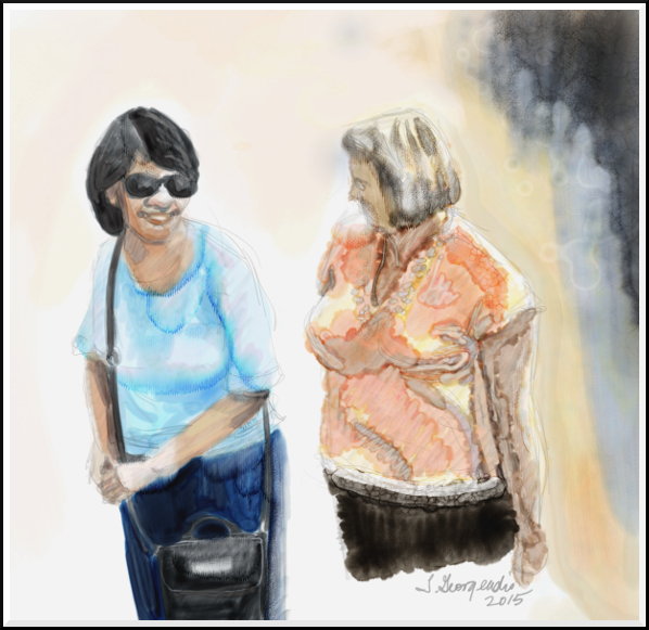 Here are some early tests using Painter 2015's various watercolour brushes. In these figure paintings I used two very wet brushes with a broad, wet fringe: