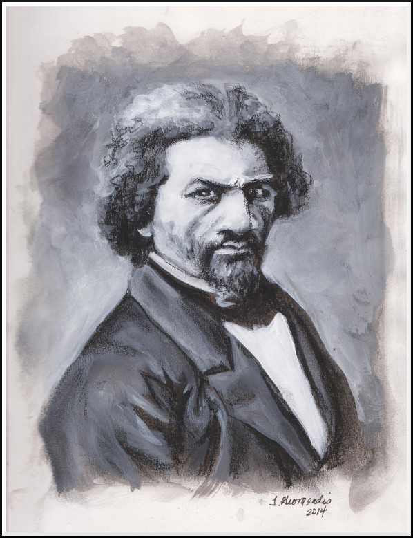 I wanted to try chiaroscuro and scumbling again, and for this portrait, I chose a photograph of 19th-century human rights leader and former slave Frederick Douglass: