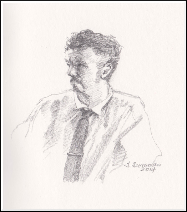 I was going to try this sketch in ink, but I keep going back to pencil for the variety it allows in sketching subtle shadows. I admire artists who so skillfully sketch portraits in ink, though. I guess it's something to aspire to!