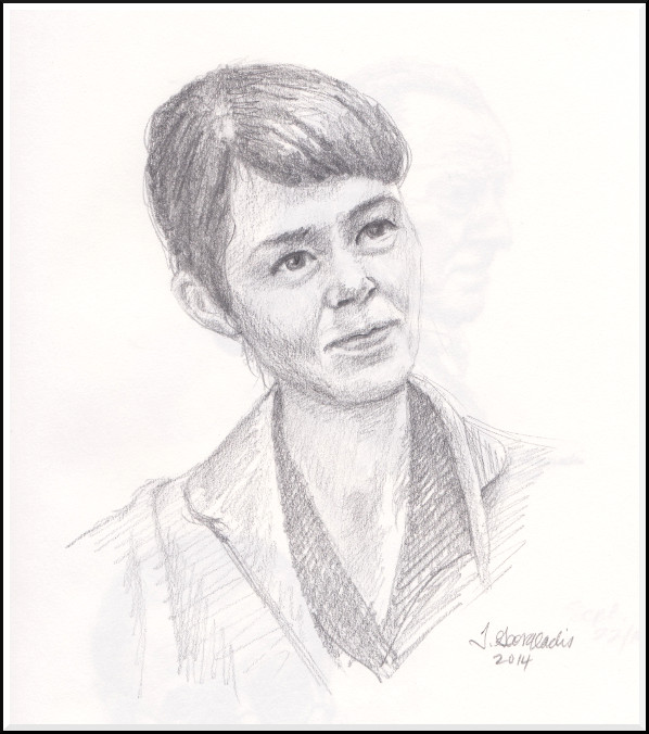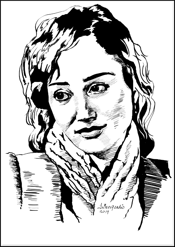 Today I sketched actress Lotte Verbeek, who plays Geillis Duncan on the TV show Outlander. I sketched the image on paper first, then scanned it and worked on digital inks in Corel Painter: