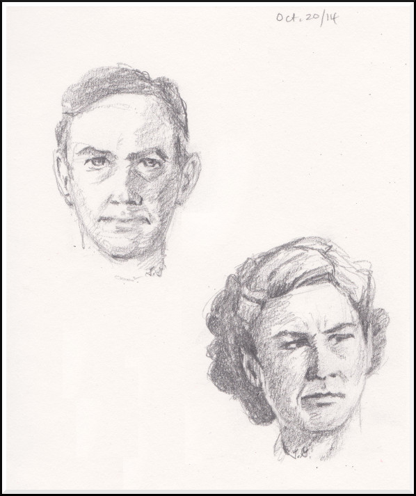 In my face-sketching practice today, I tried for speed in the drawings, knowing that some detail and accuracy might be sacrificed... and it was! However, speed sketching is something I need to practice, and I know that accuracy will eventually follow.