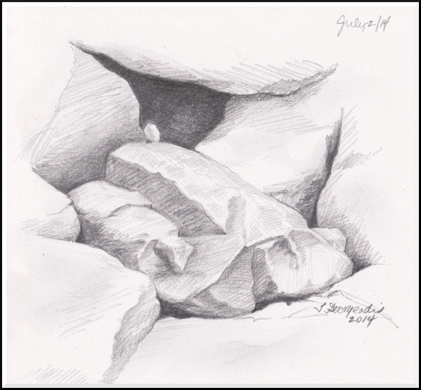 I'm always trying to improve my skills in sketching rocks, so that was the task today: