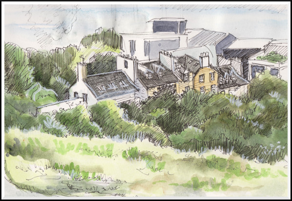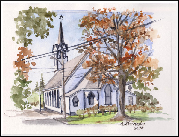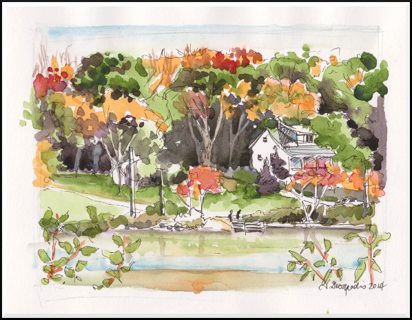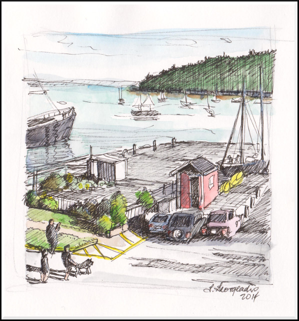 Still working on retaining simple lines and shapes in this sketch of Mahone Bay: