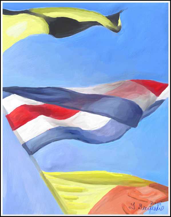 I repainted a portion of the flag line in order to experiment with how impasto I wanted the image to be. It was a good exercise – I'm going to make the painted canvas a more abstracted image, with large blocks of colour. Next, I need to screw up the courage to go out in this frigid weather and buy supplies... Yikes!