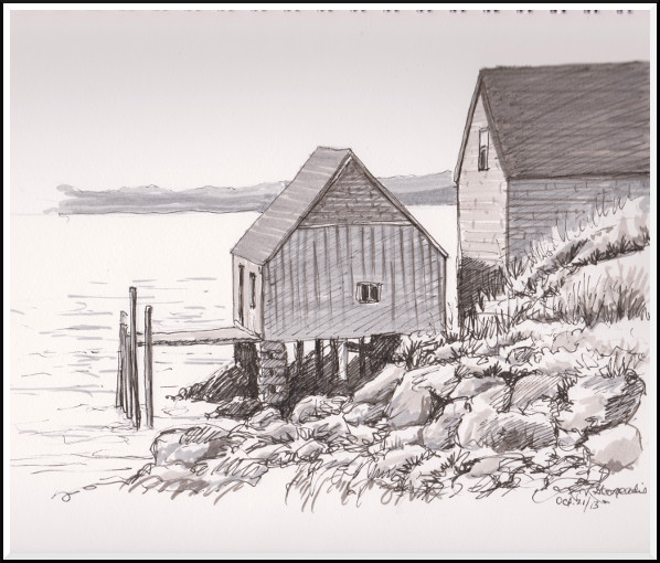 Rather a gap since the last Inktober drawing, but I'm back at it again with this sketch from Peggy's Cove: