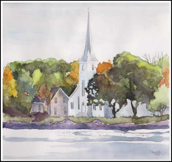 The vivid colours of fall in Nova Scotia are perfect for saturated watercolour. This was one of the great views across Mahone Bay: