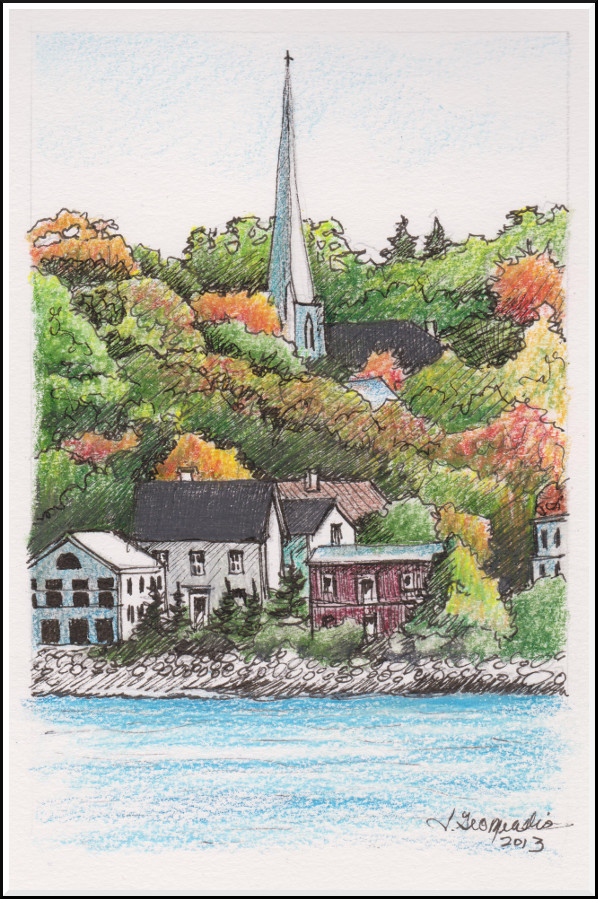 Inktober, day 29, and another opportunity to draw the fall foliage in Mahone Bay, Nova Scotia: