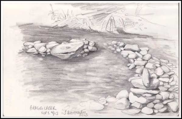 This was a pencil sketch that I started while sitting at the edge of Bragg Creek (and finished today). Perfect tranquility:
