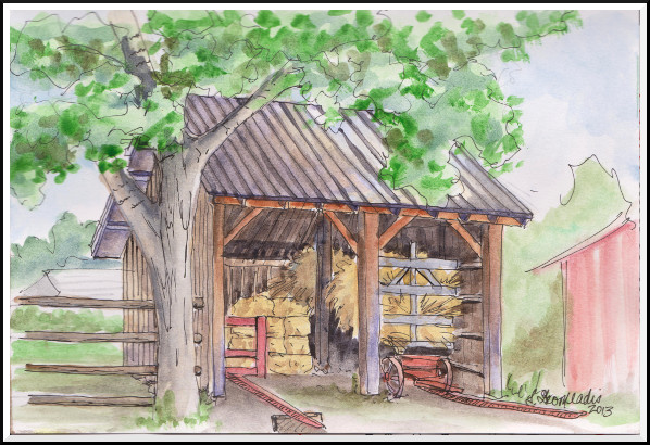 I spent a bit of time sketching this view from a quiet, shady porch – the perfect spot to draw: