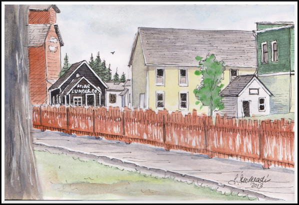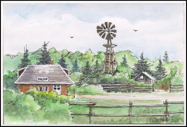 Today I had a chance to add colour to a quick sketch I did at Heritage Park on the weekend: