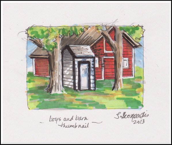 The boys' beside the barn behind the schoolhouse: