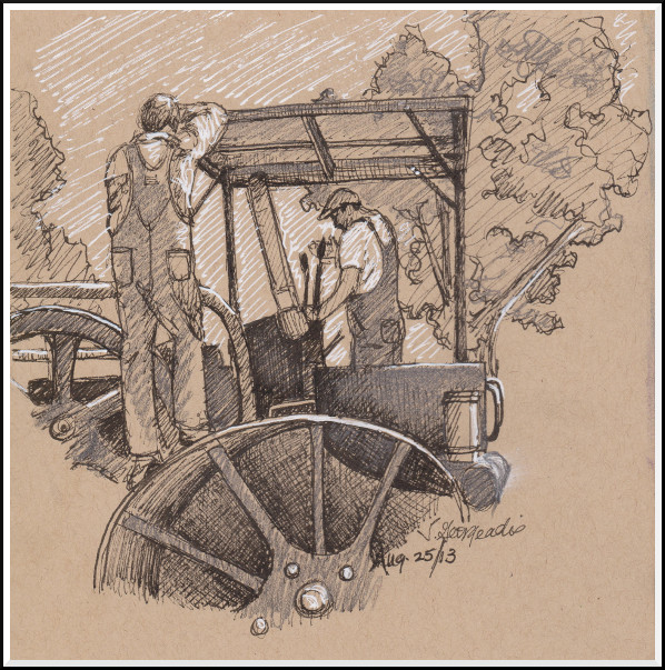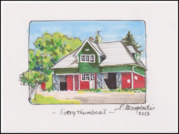 So many of the brightly coloured buildings in Heritage Park beg to be painted. This one is a small piece to lay out colour and shape. Might make this one into a pastel later: