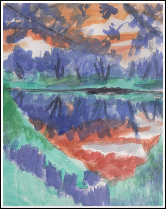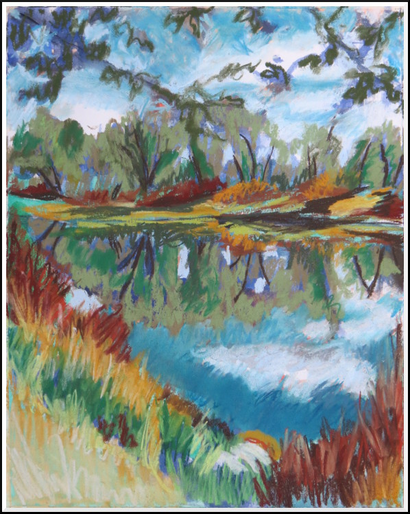 The watercolour underpainting for my long-overdue pastel painting of the pond at the Inglewood Bird Sanctuary: