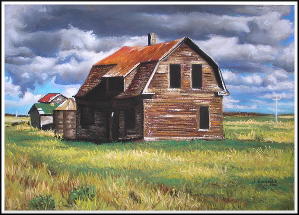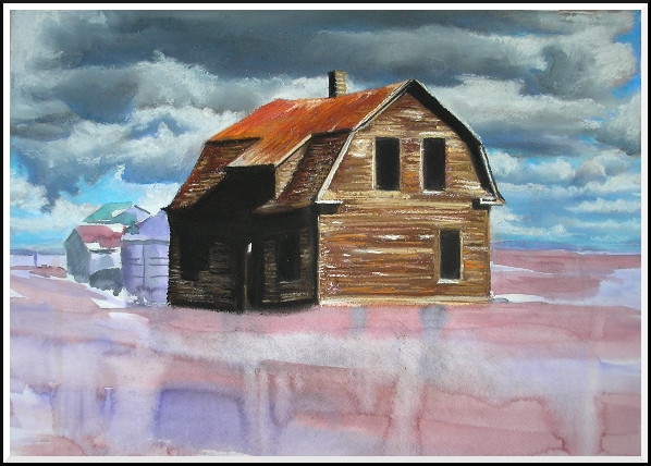 I've decided that for my next pastel painting I'll revisit subject matter that I've used in the past – an old barn from this summer's trip to Saskatchewan. The barn, which I've previously painted in watercolour, was one of my favourite references, and I'm excited to try to capture it in pastel. This time I've decided to work much larger, on Strathmore watercolour paper that I'm going to stretch and give a warm tinted wash to.