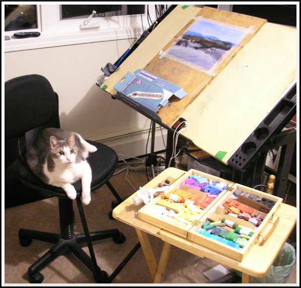 Here's a funny photo of the artist at work, taken by my husband (also a Tabby):