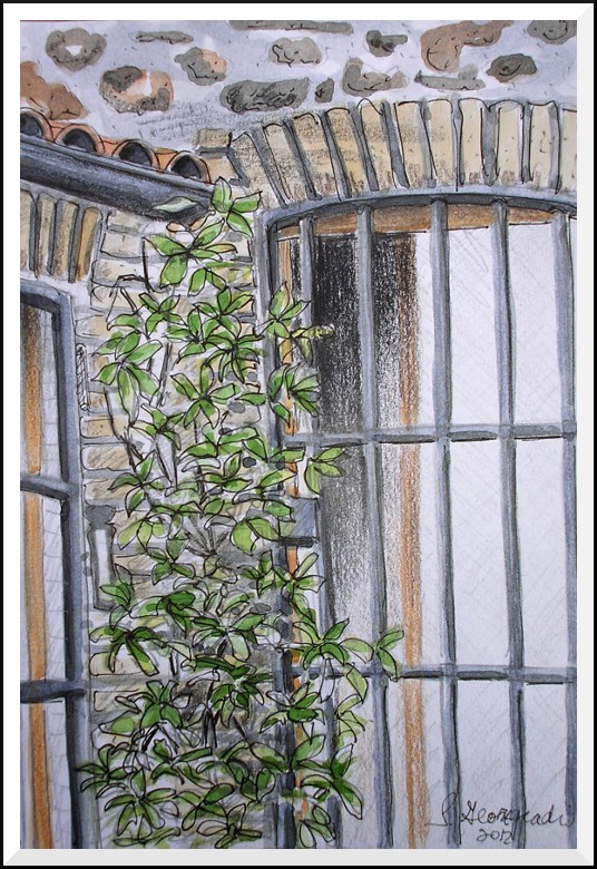 There wasn't an inch of Villa Cappella's stone structure that I didn't want to sketch or paint. This was a sunny, sheltered corner beside the front door where herbs and other plants grew in abandon: