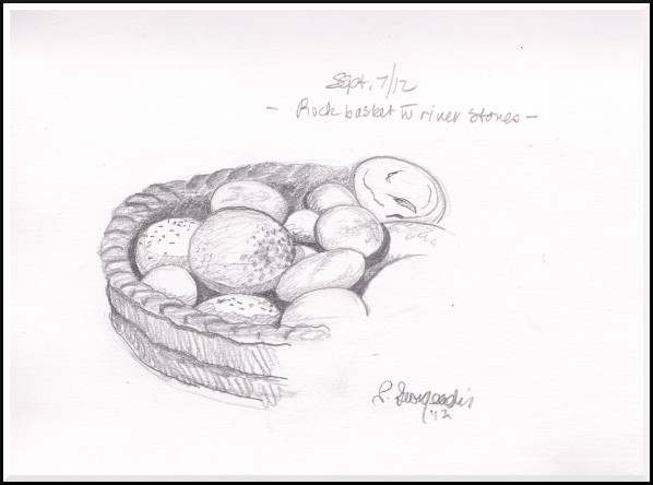 This was a clay basket filled with various river stones that I sketched on my birthday: