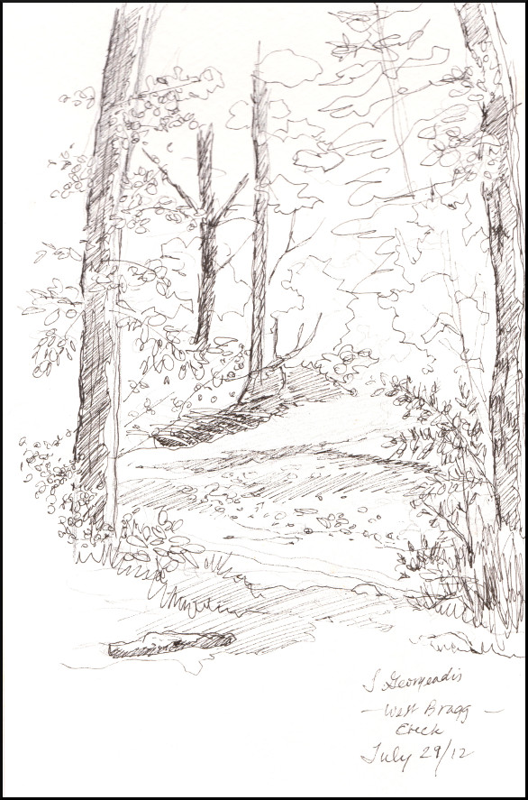 We went to Bragg Creek to hike yesterday, and at the end of the day I did a quick sketch of the creek: