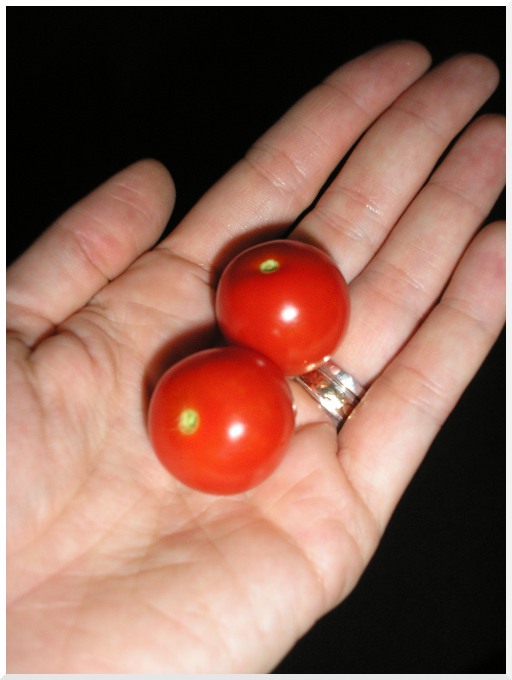 The first two tomatoes off my Tom Red tomato plant. The taste is always unbelievably refreshing and complex, and I wish I could sample the colour to make a tube of paint!