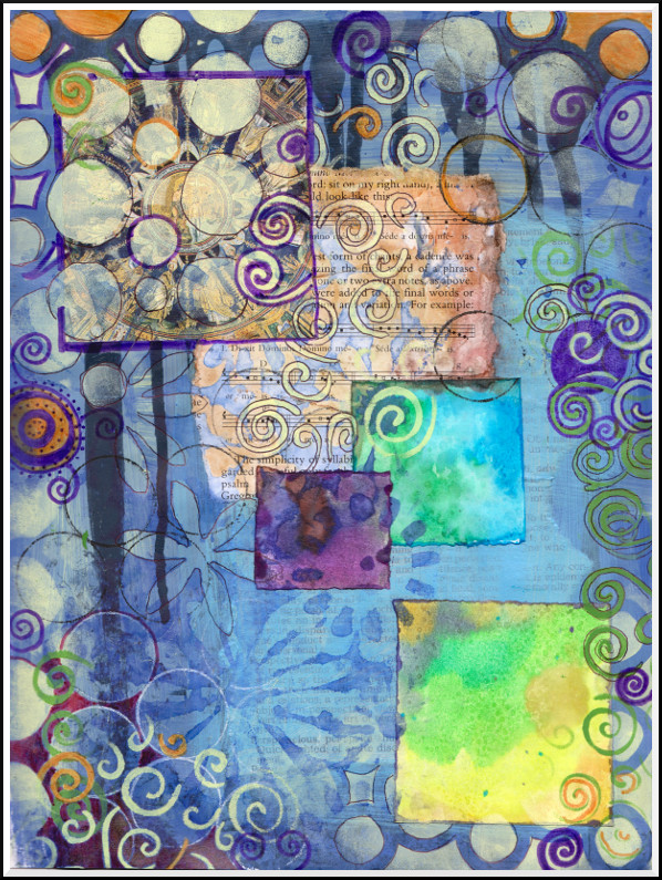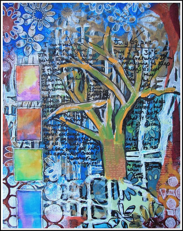 For variety, I created my art journal collage on canvas board – much sturdier, and stays nice and flat!
