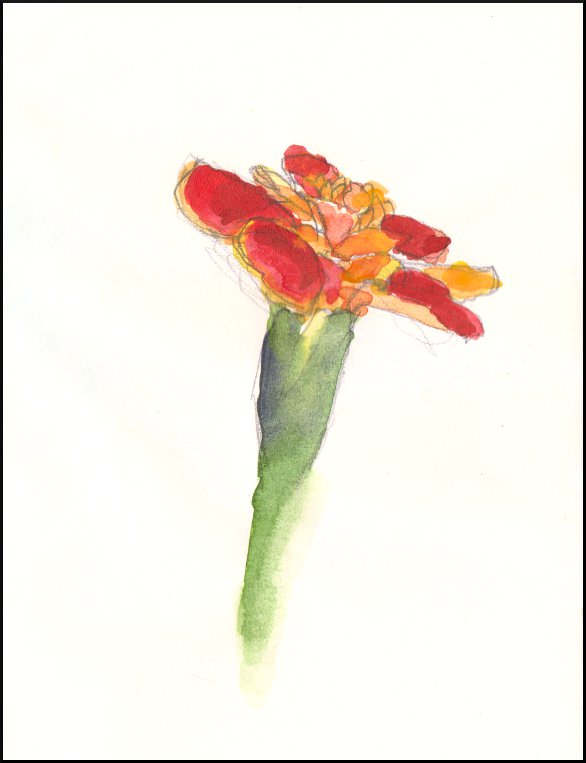 I'm happily back to sketching the flowers on my balcony! Here's a quick watercolour sketch of one of my marigolds: