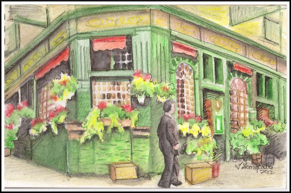 A quick sketch using watercolour pencils and ink pen: