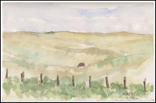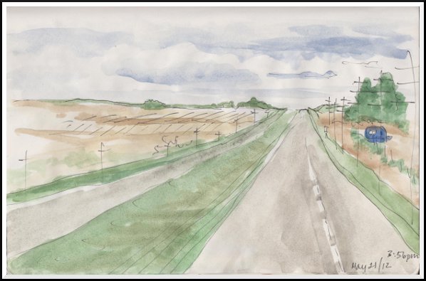 And here are the last three sketches. Note the gradual flattening of the landscape... Boy, was I happy to see that cow! And that stand of trees was such a delightful surprise! (Sorry for the sarcasm...)