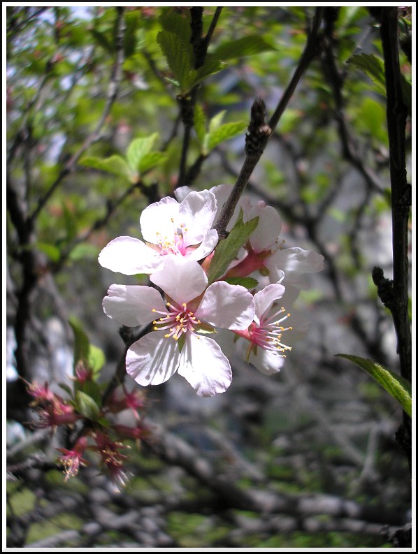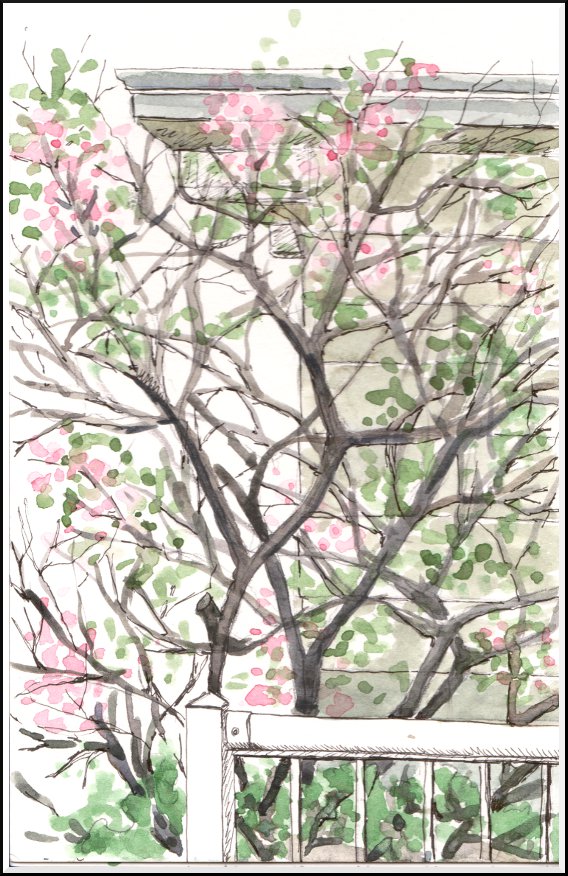 A quick sketch of a nanking cherry bush just starting to blossom: