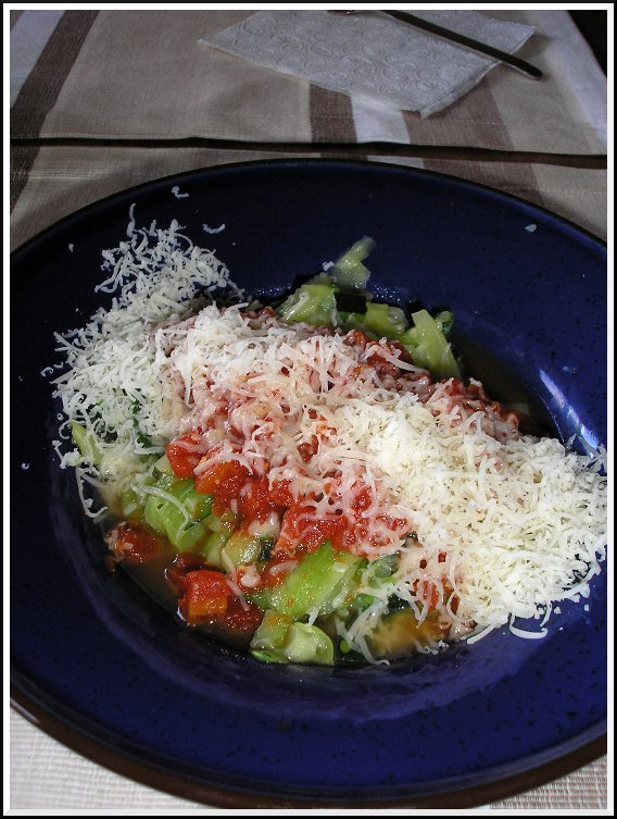 This week's best sources of food happiness for me were zucchini pasta (shredded zucchini, homemade tomato sauce and asiago cheese) and a yummy Chianti from Sting and Trudie Styler's Tuscan villa's vineyards (say that three times fast!). Tasty!