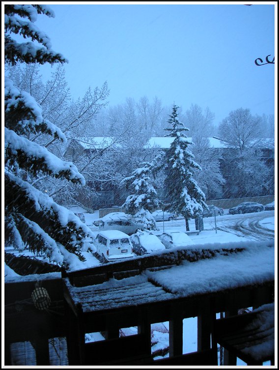 This is entirely my fault - I washed all the windows yesterday. Yesterday there wasn't a speck of snow on the ground. Today is a different story...