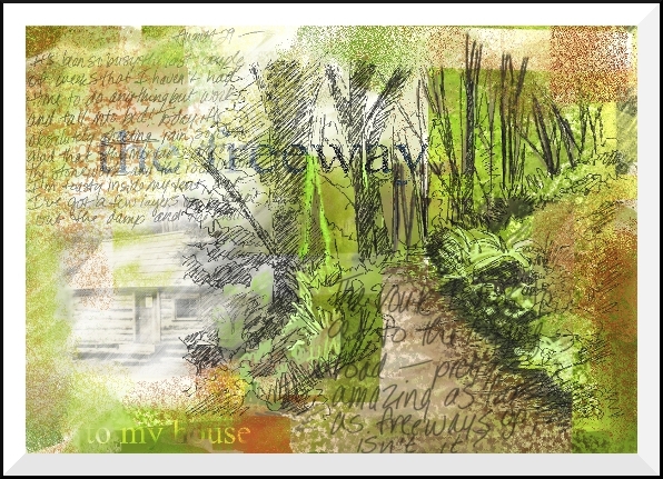 Recently I've been reading about collage art journalling, and I thought I might like to give it a try to add variety to my sketchbook. Right now the fastest and most efficient way for me to collage (in the limited time I have between bouts of writing my graphic novel) is to do digital collage. I'm using Corel Painter 12, which gives me endless media to work with. Here is the first collage: