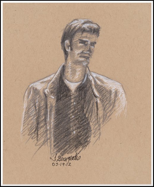 A very quick pose sketch – the face has some wonky bits, but I'm generally happy with the gesture, light and shadow: