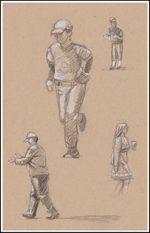 With these sketches I was practicing describing posture and gesture with an efficiency of line: