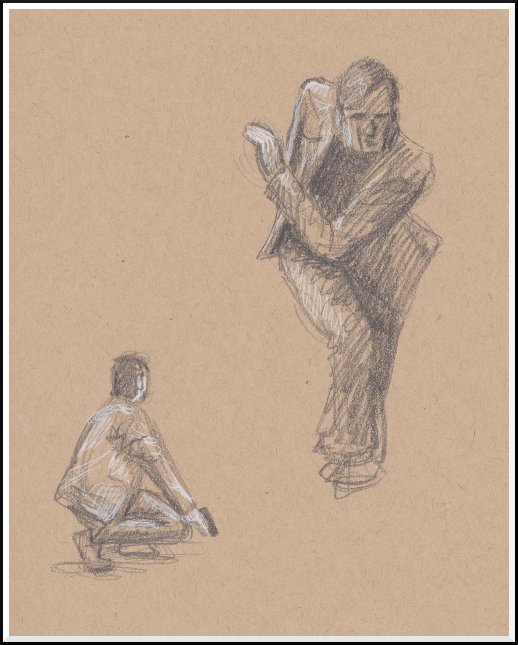 I've been working on studying body position, gesture and facial expression to improve my figure drawing. This is the first sketch of the series: