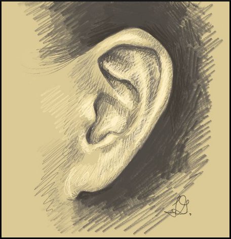 And finally, the ear. I don't have as much trouble sketching a quick ear, but it always helps to practice: