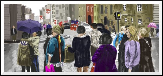 I'm enjoying the freedom of painting looser than usual with wide brush strokes of colour. This image is from a picture we took last spring at the National Monument on Calton Hill in Edinburgh: