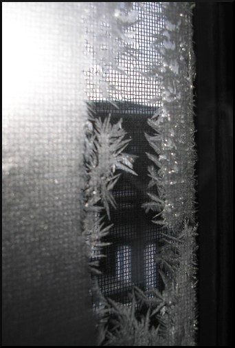 We've been fortunate the last few weeks to enjoy lovely, unseasonably warm weather, but the inevitable has occurred. Today it's -25°C, and with the windchill it feels like -34°C, so I'm hunkering down to do some writing. Here is the frosty view from my front window: