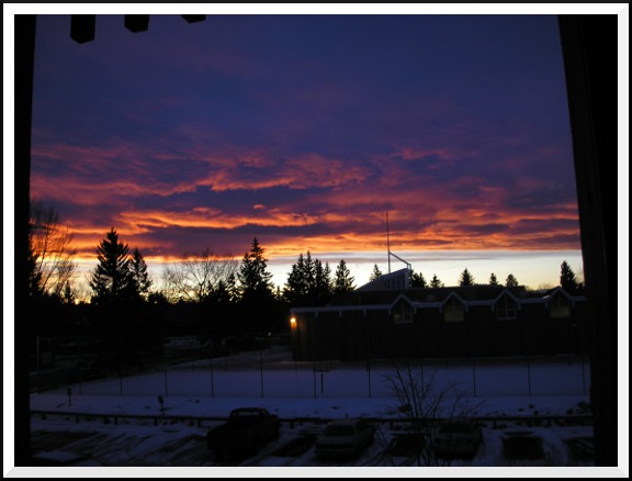 I had to post a picture of a beautiful sunset we had this afternoon. Even though the sun was setting at 4:30, it was eight degrees Celcius outside, and it even rained for a bit. Weird but wonderful on December 19!