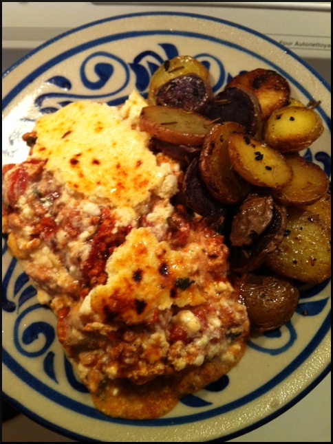 These days I'm working on a fairly involved writing project while making art at the same time. Some days writing wins out over drawing or painting, and today was one of those days! Here is a picture of one of my recent home-cooked dinners, courtesy of my dear sister. This time, it was moussaka and roasted potatoes – delicious! Tomorrow, a peek at my current drawing – another digital pastel...