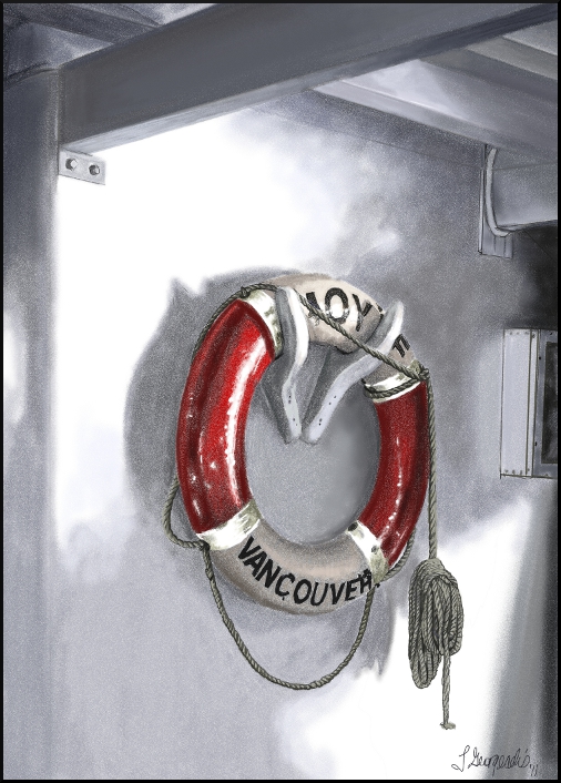 My current project is a digital pastel of a life preserver from the Moye paddlewheeler at Heritage Park.
