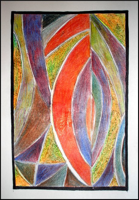 My offering today is a VERY fast sketchbook drawing. This was mostly an excuse to play with some coloured pencils I received as a gift on my birthday. The company is called Chartpak, and the pencils are called Magic Fx. Essentially, these are over-sized pencils made up of marbled pigment combinations that draw a line of varied colour. Every time you twist the pencil on a surface, the colour changes, so precision is not the point (!), but playfulness is. So, here's my play sketch:
