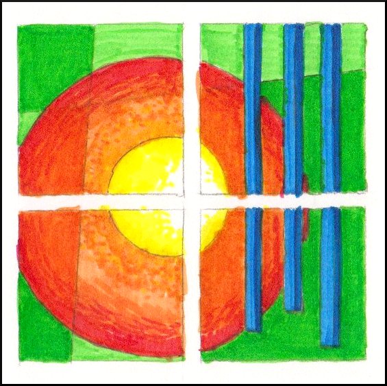 This is the first stage of the drawing – laying in basic colour and shape: