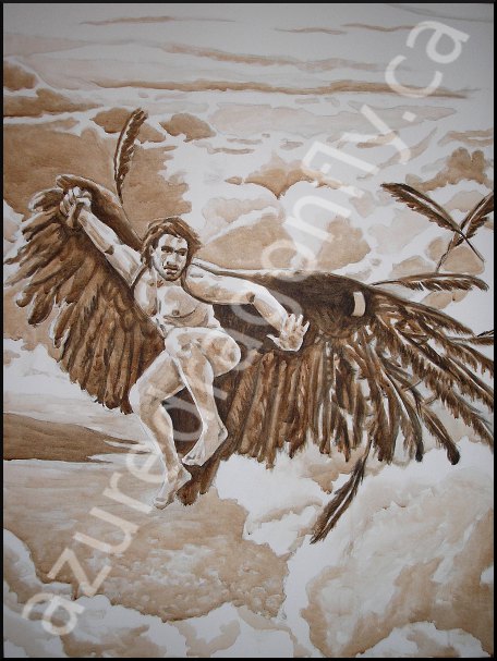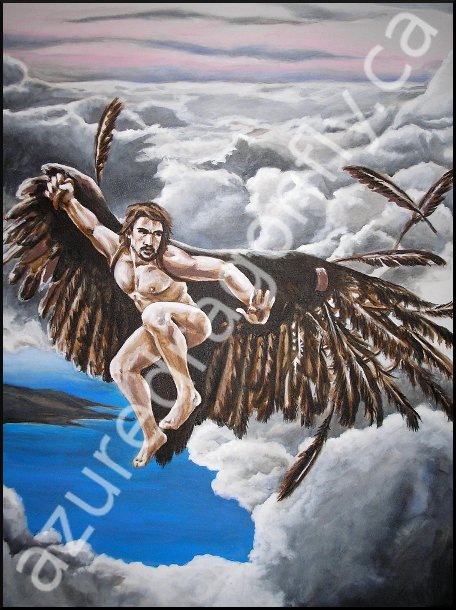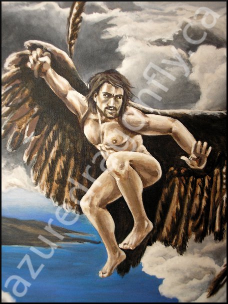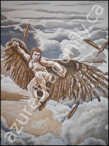I've recently been commissioned to paint an image of Icarus from Greek mythology. I created the digital version (below) to be used as a working model for the client's approval, but my commission is for a painted canvas of this image. Beginning next week, I will be posting the various stages of painting this image onto a 30” x 40” canvas, beginning with the initial pencil sketch, followed by the monochromatic underpainting, and finally the colour overpainting.