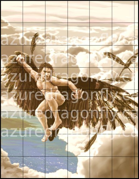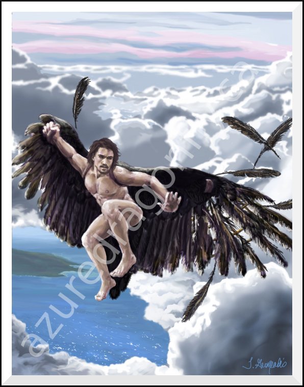 Tomorrow I'll be working more detail into Icarus' wings and body, and making further adjustments to the clouds as needed.