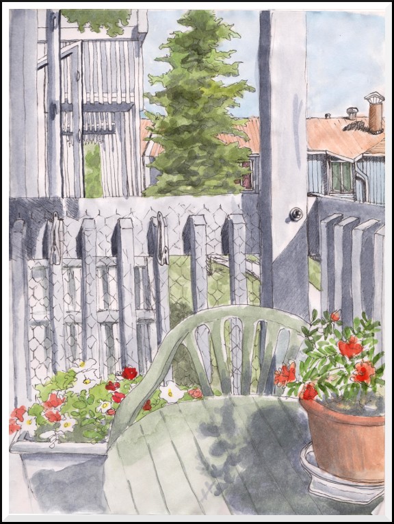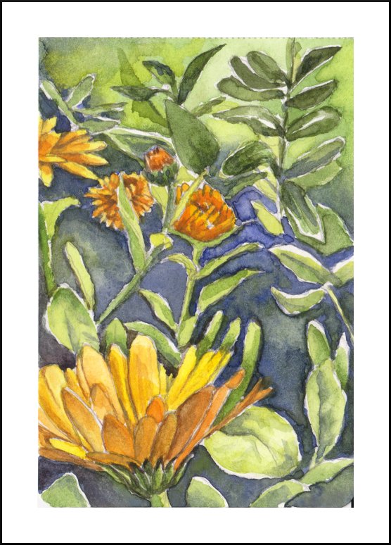 I was asked to make a birthday card for my aunt who is turning 91 this year. I've been wanting to use some of our Edinburgh vacation photos as painting reference, so for this card I used a photo from the Royal Botanic Garden. My favourite part of this piece was working wet into wet with very intense colour.