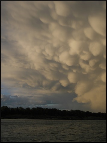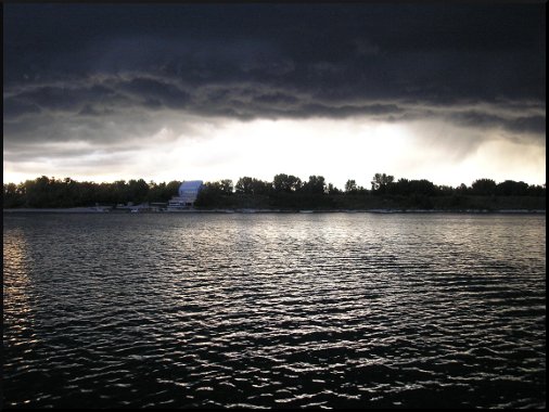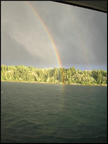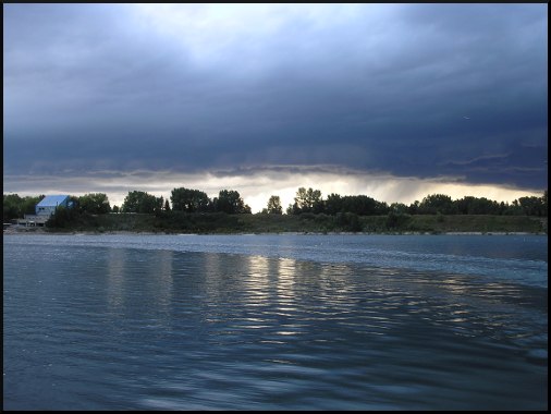 It was Jim's birthday yesterday, and to celebrate we went on a Captain's Cruise on the Glenmore Reservoir - a two-hour cruise on the S.S. Moyie paddlewheeler. The best part of the boat ride proved to be the spectacularly dramatic weather we experienced - from sunshine to ominous cloud to hail and rain and thunder, to sunshine again. Mother Nature certainly put on a show for Jim! He and I braved the elements out on deck and got some great photos in return.